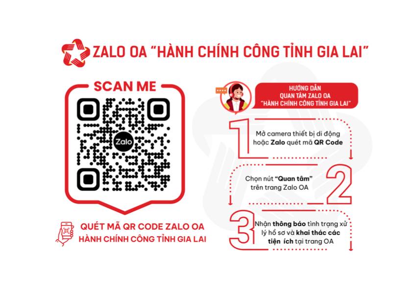 2. Trung tâm Phục vụ hành chính công xã niêm yết mã QR code của Cổng Zalo OA “Hành chính công tỉnh Gia Lai” tại các bàn hướng dẫn hồ sơ, quầy tiếp nhận hồ sơ của Trung tâm, đồng thời hướng dẫn tất cả những người dân, doanh nghiệp khi liên hệ thực hiện thủ tục hành chính quét mã QR này và quan tâm Cổng Zalo OA “Hành chính công tỉnh Gia Lai” để được nhận tất cả thông tin liên quan đến quá trình tiếp nhận, giải quyết hồ sơ thủ tục hành chính trên địa bàn xã (kể cả những hồ sơ khác được nộp sau này) và các thông tin hướng dẫn hữu ích khác liên quan đến việc thực hiện thủ tục hành chính trên địa bàn xã.